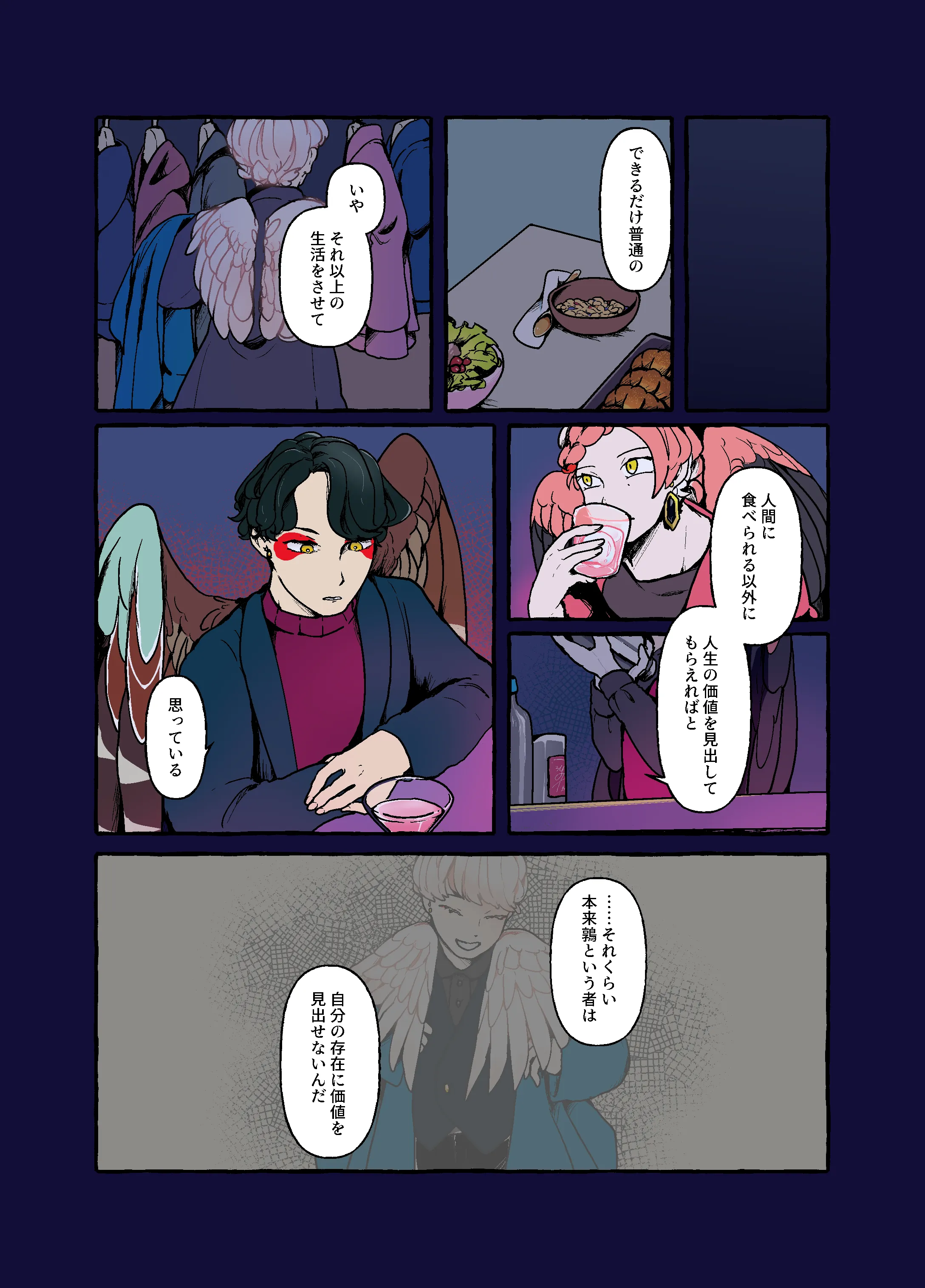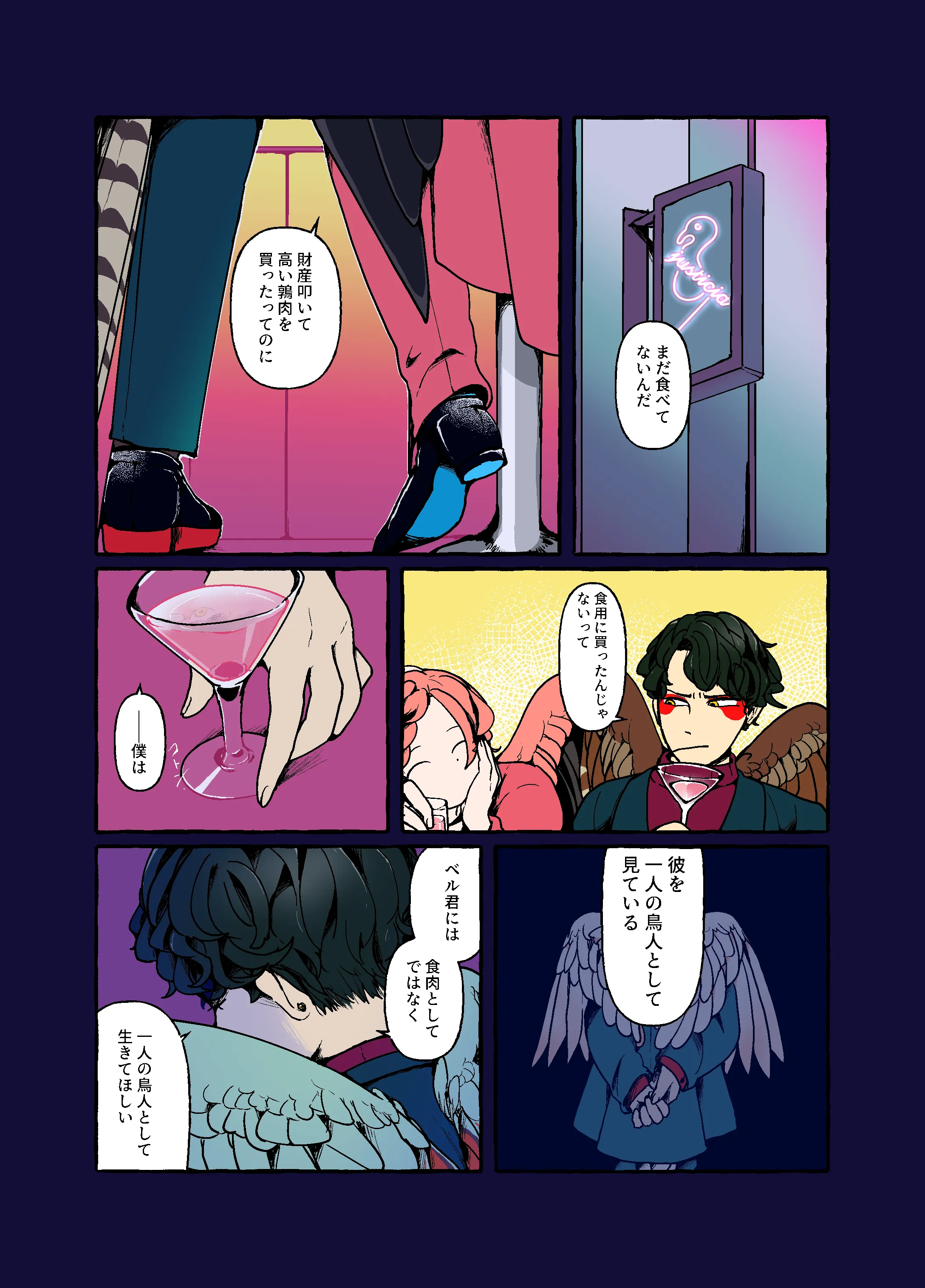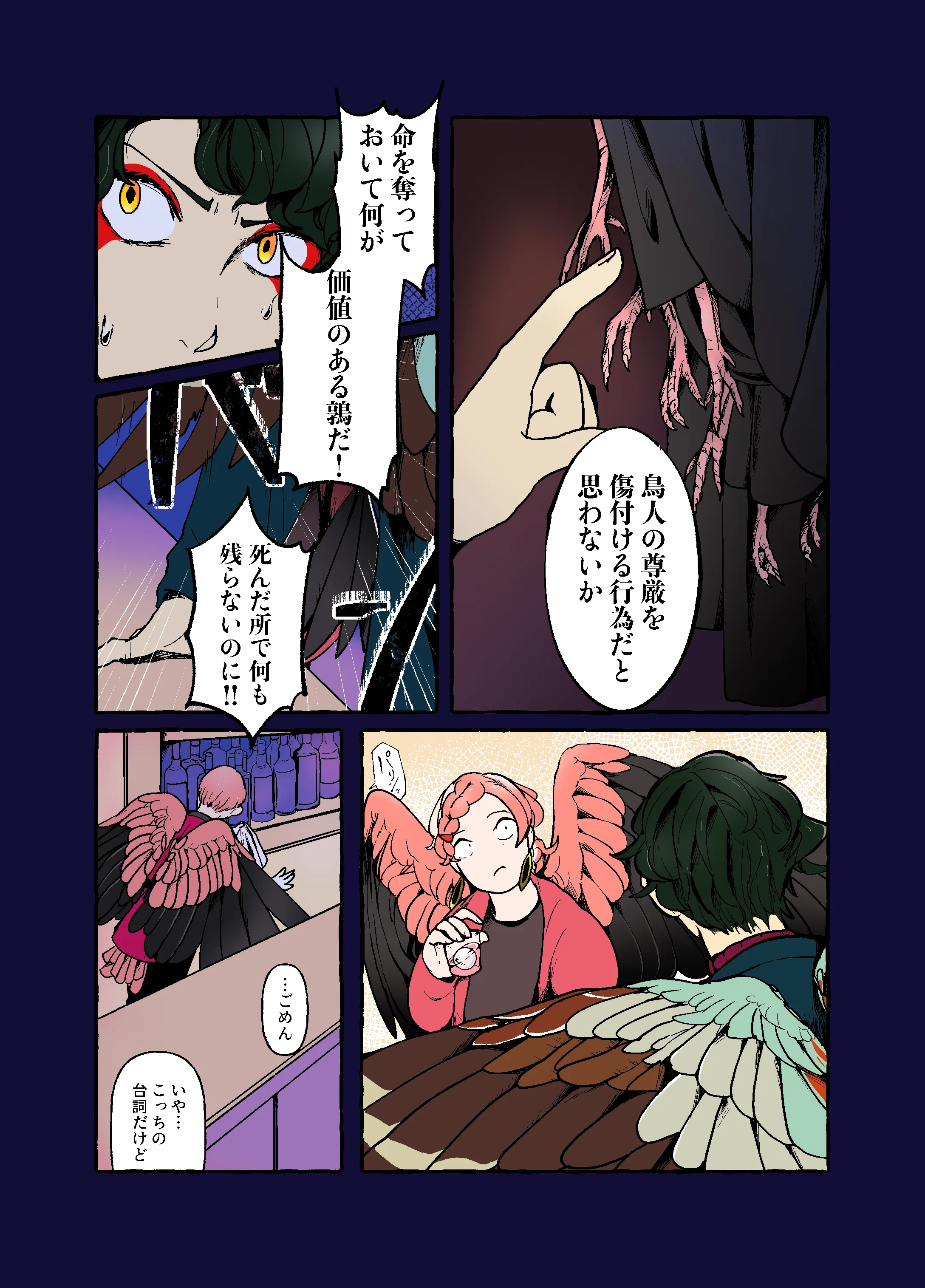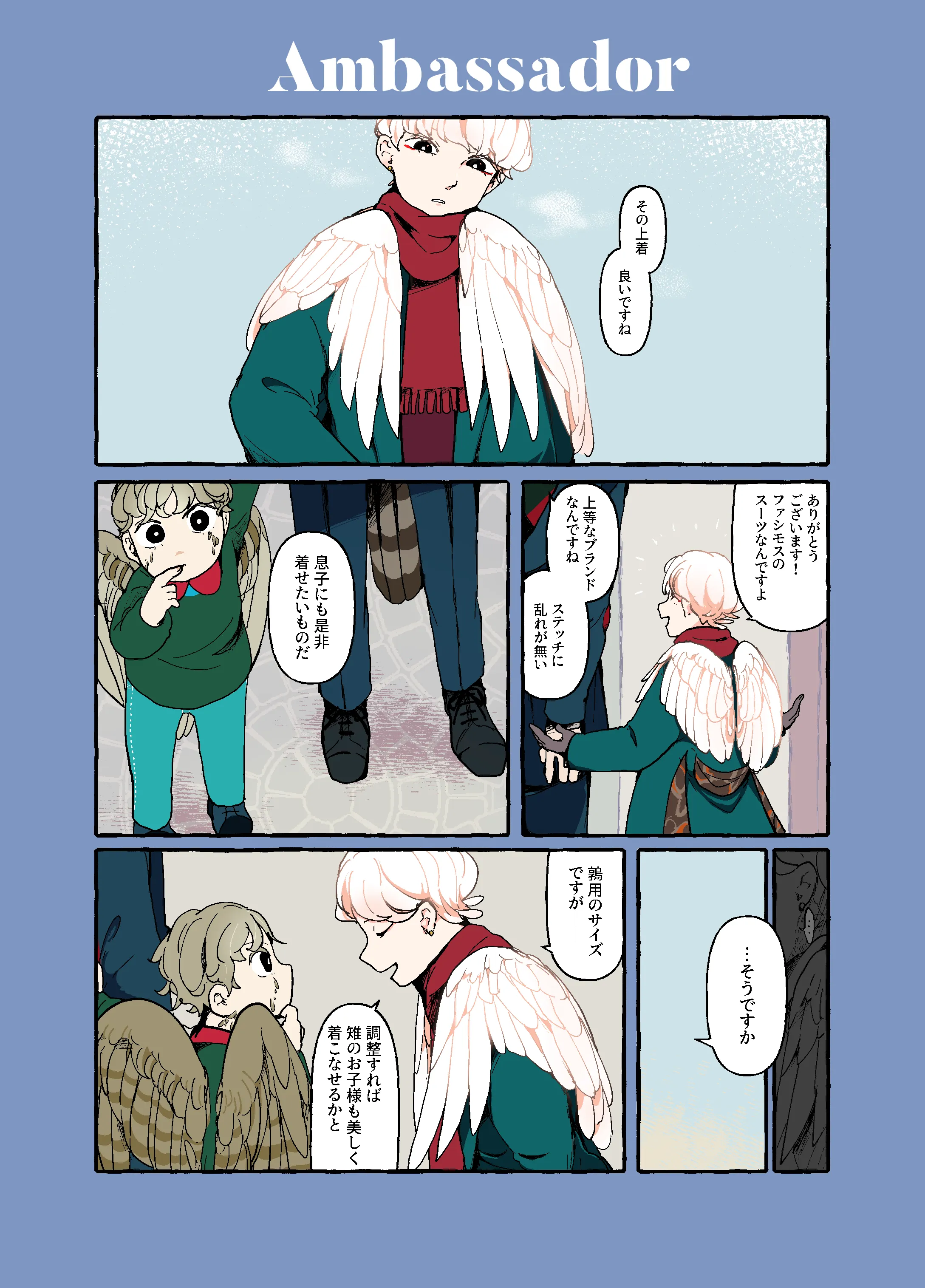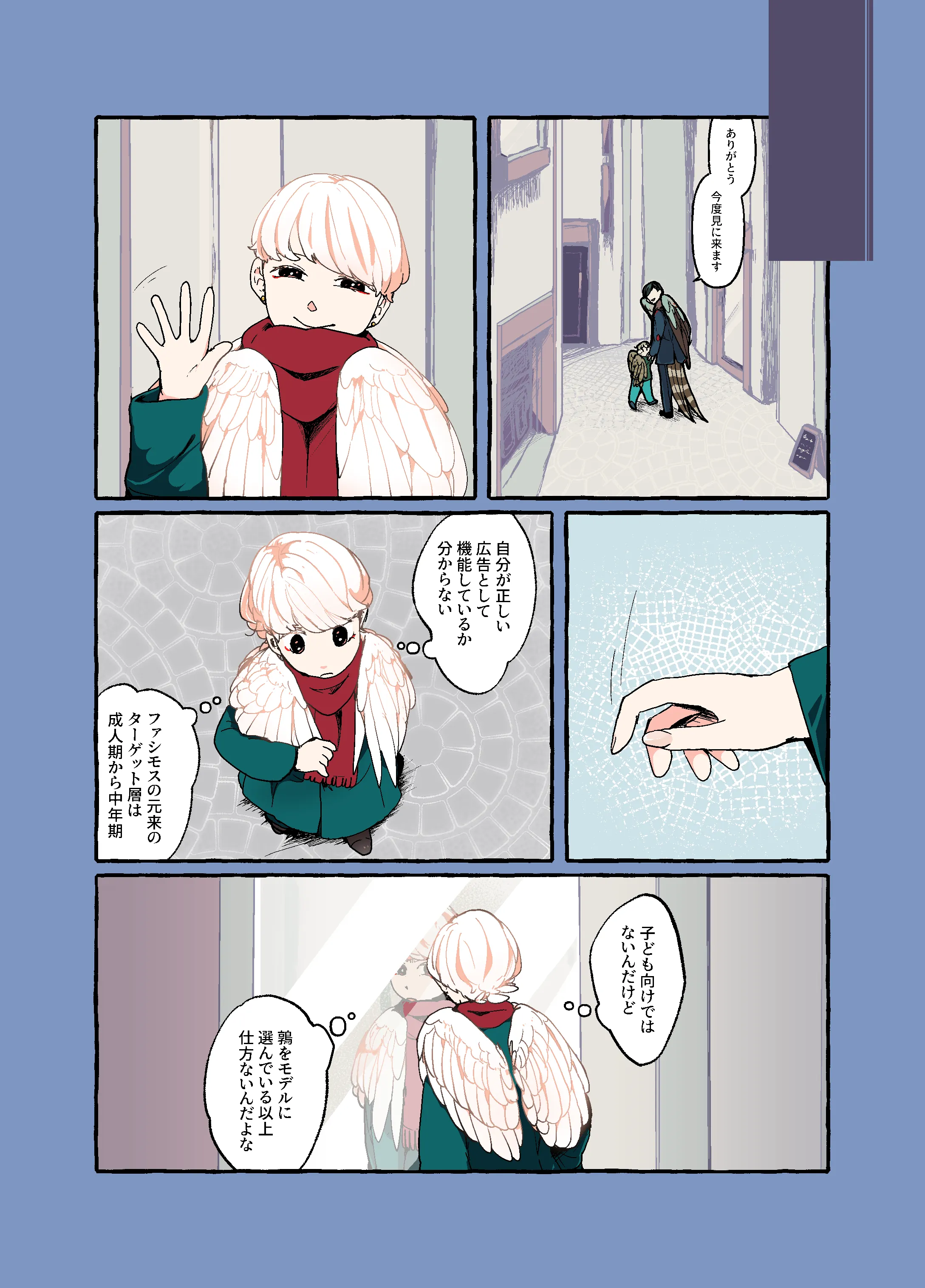 訳ありの鳥人と、それをモデルに迎えたテーラーの鳥人。